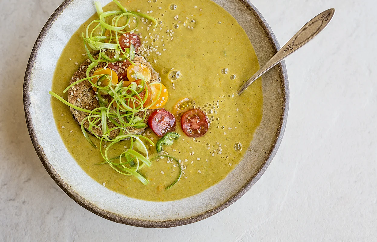 I just got back from a lovely trip to Mendocino where we stayed in the garden suite of an Airbnb. The host had a lovely Asian pear tree so heavy with fruit that the branches started to break. She was kind enough to let me take home a giant tote bag full of pears to play with. Here's an Asian-inspired gazpacho that's perfect for summer and also uses the raw cannabis cube from my last post.